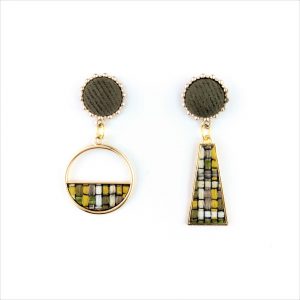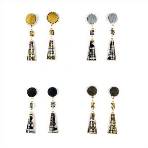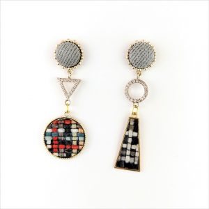 灰色布面雙圈水鑽黑紅色彩格耳環