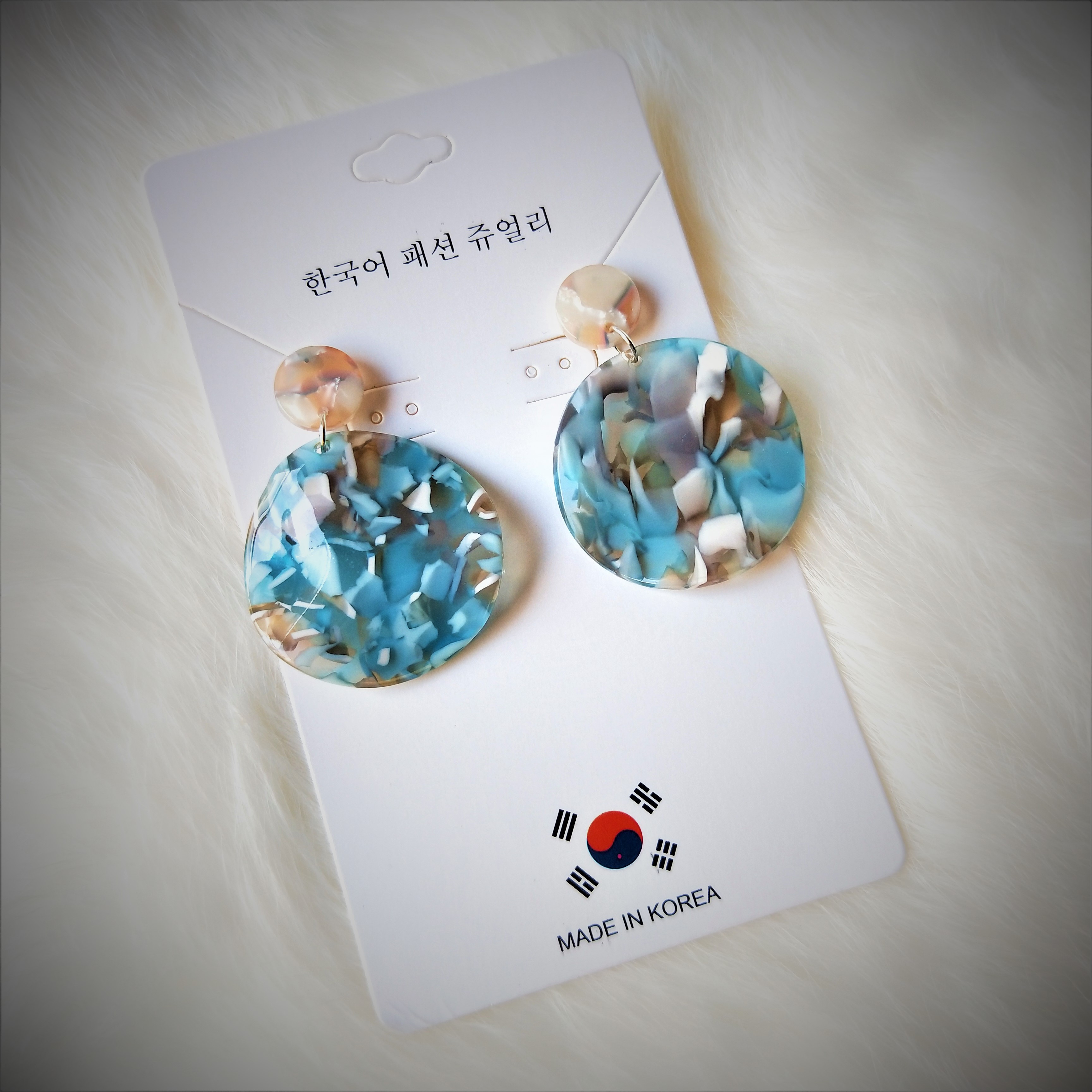 ◤KOREA◢ 豹紋方形金邊馬毛耳環