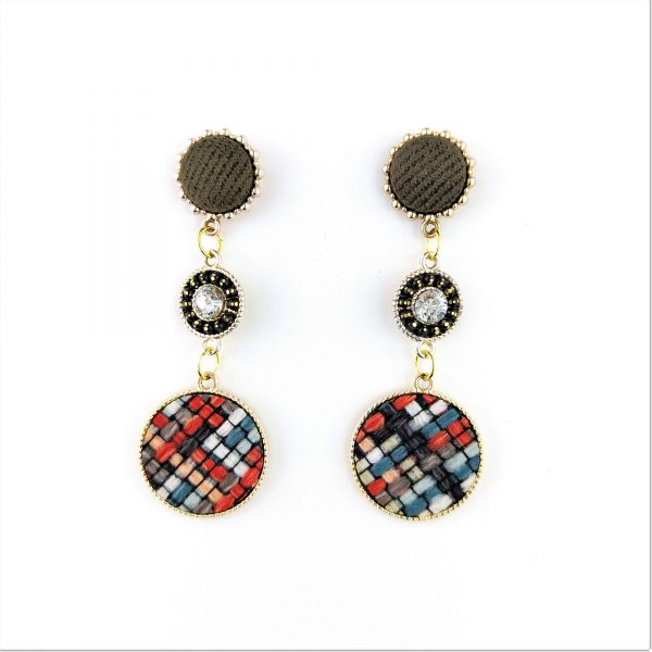 灰色布面雙圈水鑽黑紅色彩格耳環