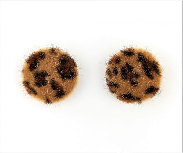 豹紋圓形毛毛耳環