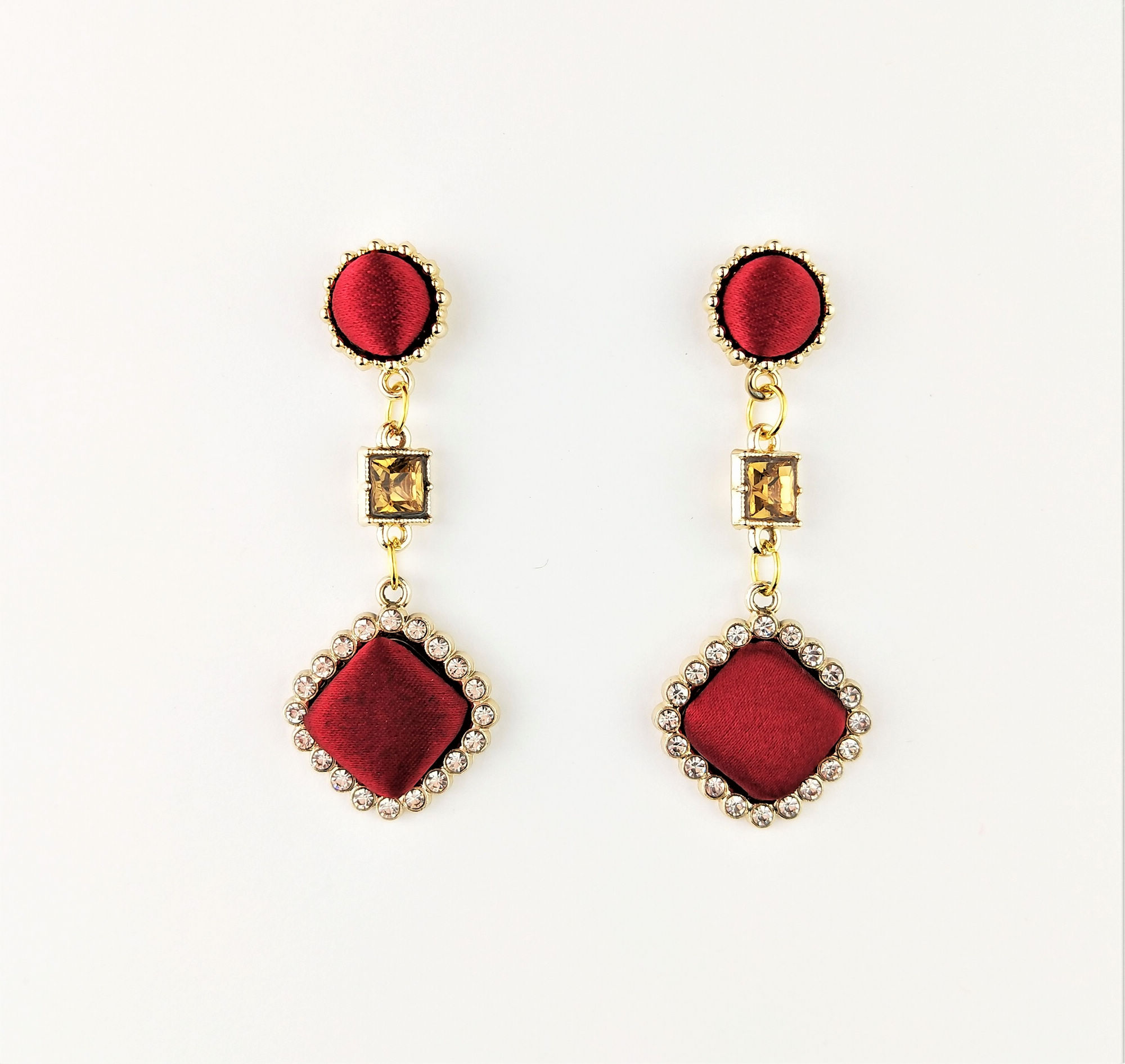 金邊方型紅色布面水鑽耳環(兩色)