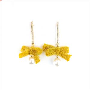 ◤KOREA◢ 馬毛金邊珍珠耳環